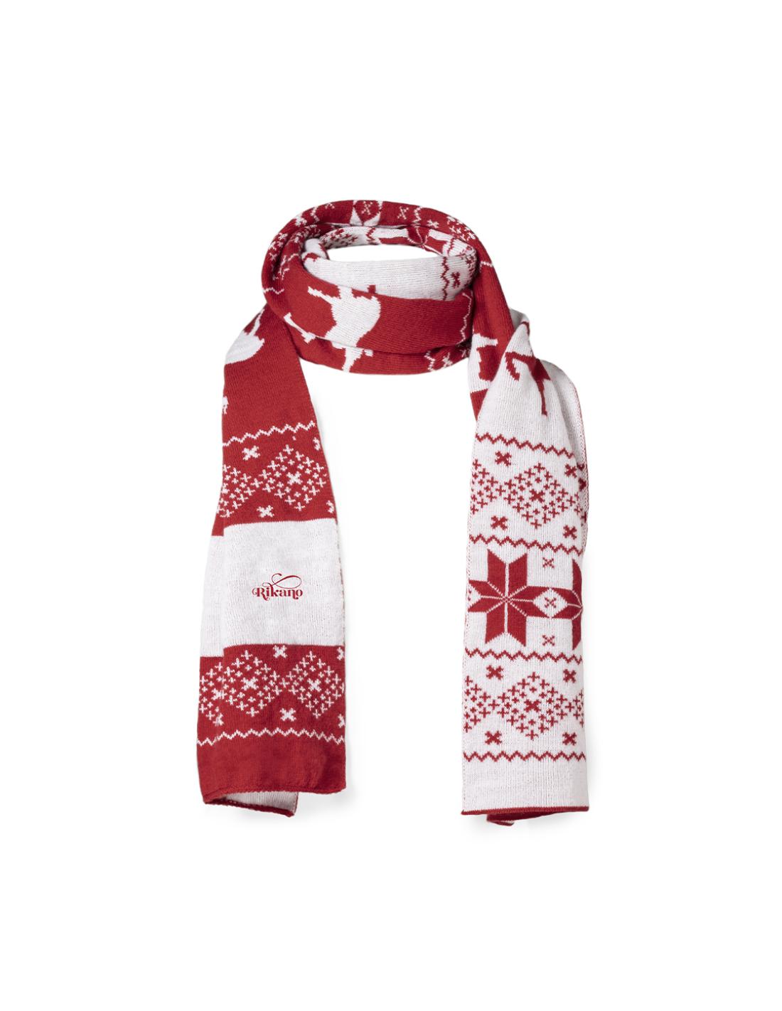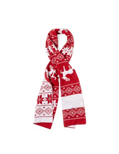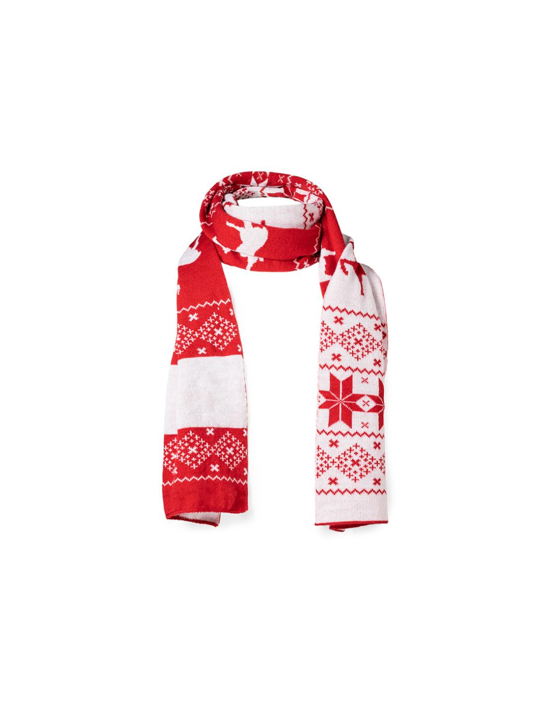 Divertida y cálida bufanda con motivos navideños. Un original regalo para lucir con estilo en navidad. Fabricada en suave poliéster acrílico y presentada en una bolsa individual reciclada. Cuenta con zona especial para el marcaje.