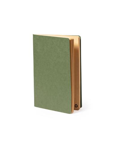 Libreta A5 de línea nature, con tapas blandas en resistente cartón reciclado. 60 hojas lisas de acabado kraft y distintivo reciclado.
