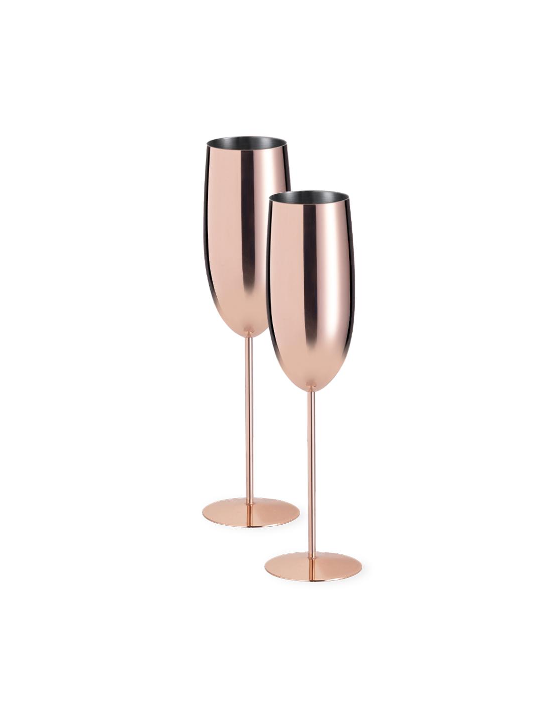 Set de copas de 270ml de capacidad y sofisticado diseño. Fabricadas en acero inoxidable, con recubrimiento de cobre galvanizado y acabado brillo. Presentadas en exclusiva caja individual de diseño negra.