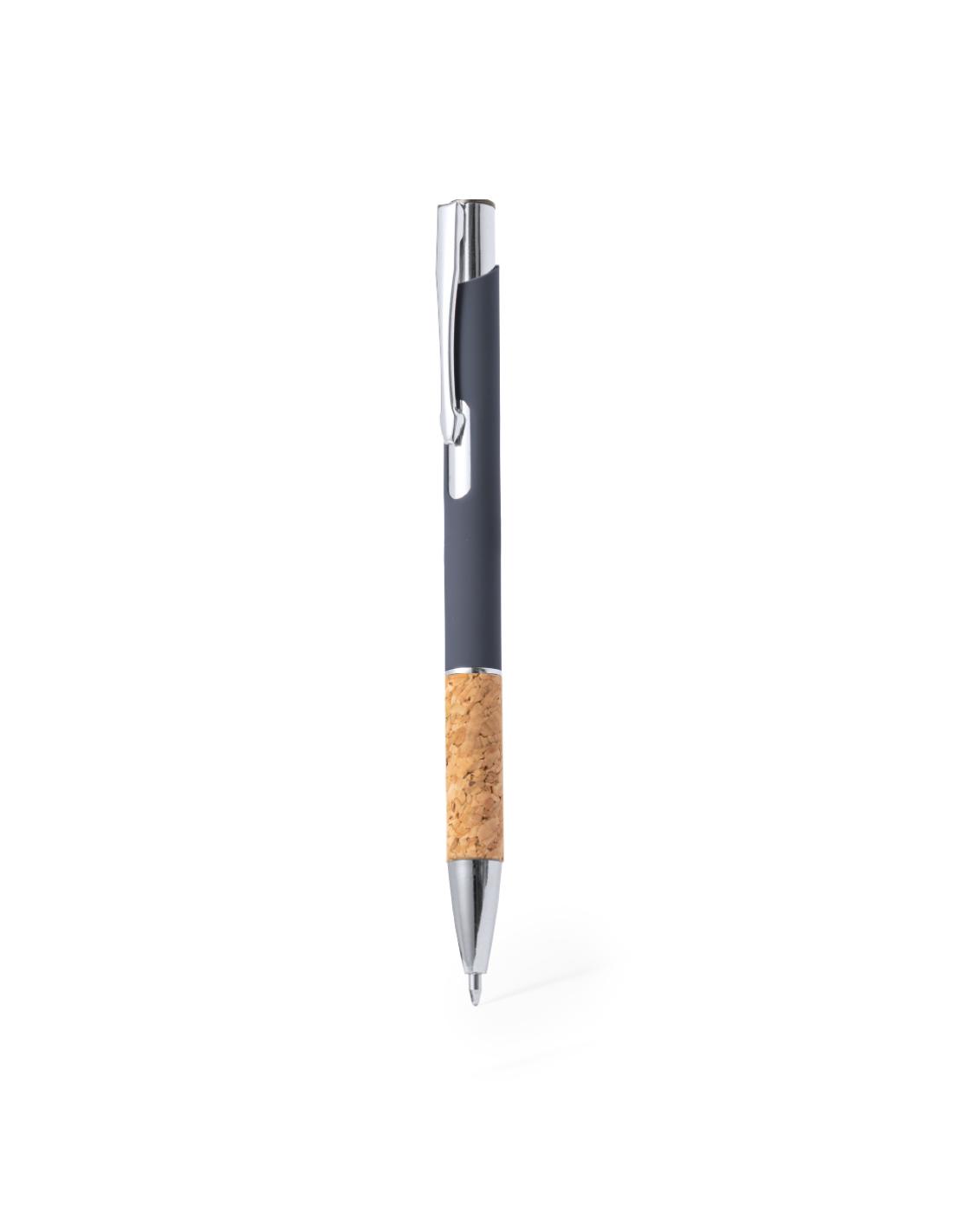 Elegante bolígrafo de línea nature y mecanismo pulsador. Cuerpo en resistente aluminio de acabado goma y empuñadura en corcho, con la caña en una amplia gama de distintivos colores. Clip metálico, con pulsador retráctil y en tinta azul. Presentado en bolsa individual reciclada.Elaborado con elementos vegetales para así fomentar la utilización de materias primas naturales y reducir las emisiones contaminantes.