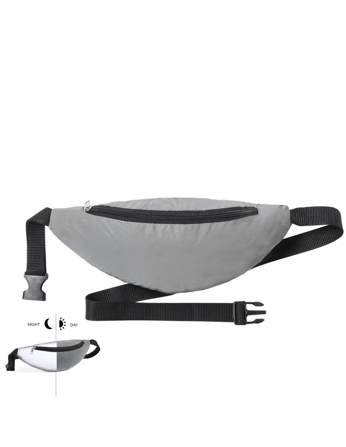 Riñonera en resistente poliéster 210T. Fabricada empleando tejido con gran capacidad para reflejar intensamente la luz, gracias a millones de pigmentos reflectantes y basándose en el principio de la retro-reflexión de la luz, una propiedad de visibilidad nocturna que consiste en la refracción de la luz hacia la fuente de origen de la misma. Con bolsillo de cierre de cremallera y cinta con cierre de hebilla ajustable. Diseñada para el día a día y actividades de ocio. Resistente al agua.