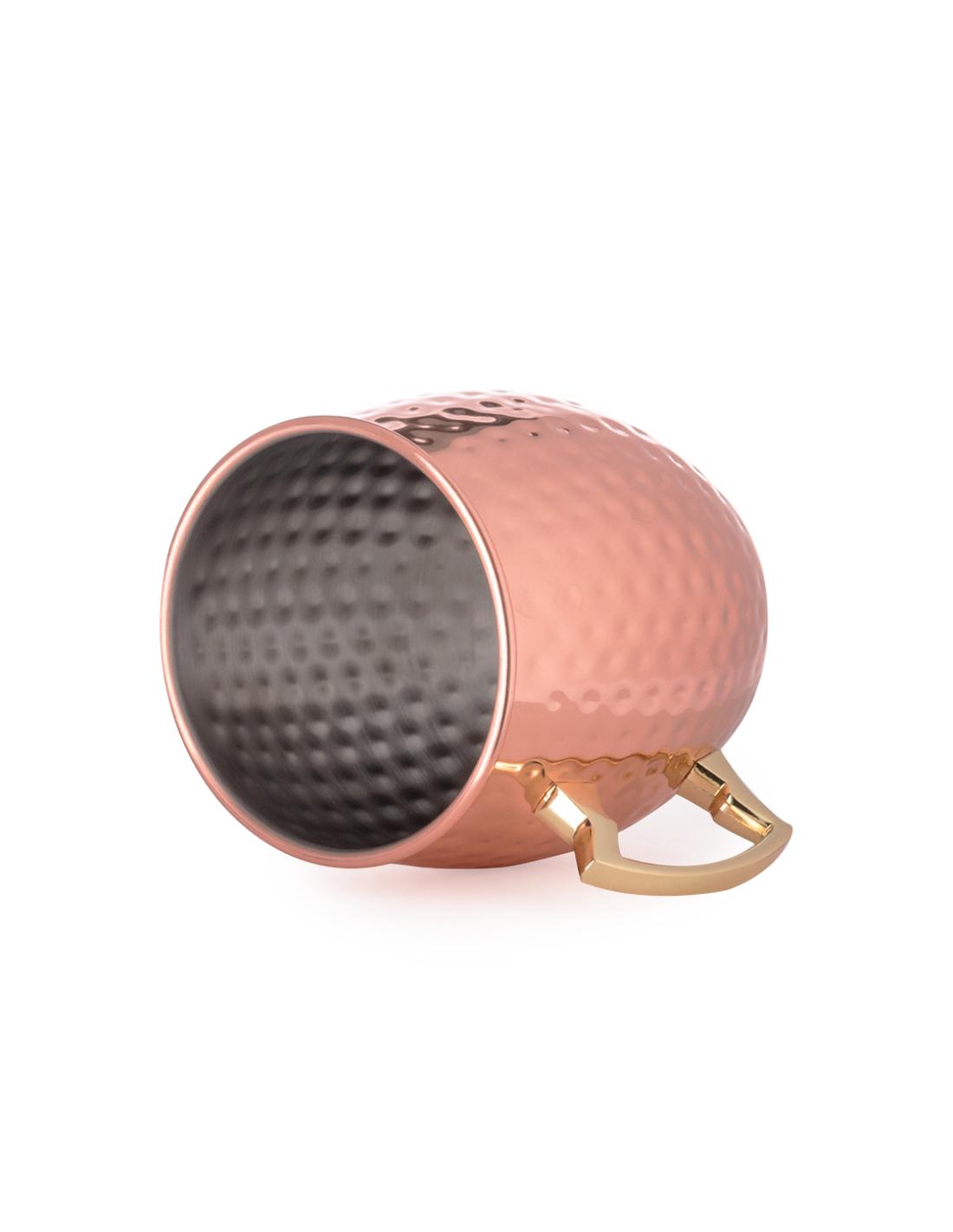 Taza de 500 ml de capacidad en acero inox con recubrimiento exterior de cobre galvanizado. Original diseño con acabado brillante, vintage y elegante. Presentada en exclusiva caja individual de diseño negra.