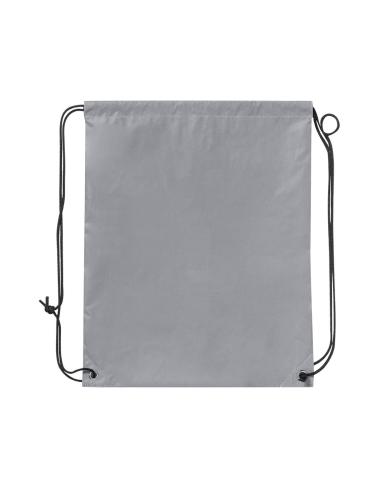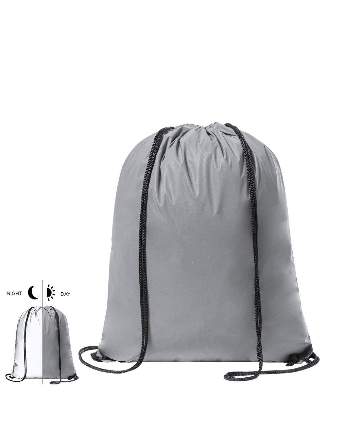 Mochila de cuerdas de suave poliéster 210T. Fabricada empleando tejido con gran capacidad para reflejar intensamente la luz, gracias a millones de pigmentos reflectantes y basándose en el principio de la retro-reflexión de la luz, una propiedad de visibilidad nocturna que consiste en la refracción de la luz hacia la fuente de origen de la misma. Con cuerdas autocierre en color negro y argollas metálicas. Resistencia hasta 7kg de peso y resistente al agua.