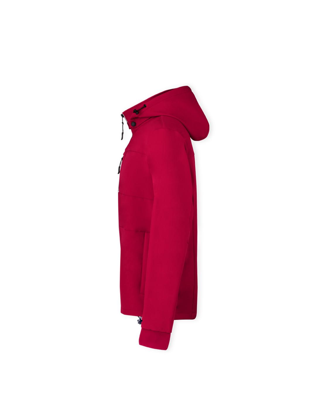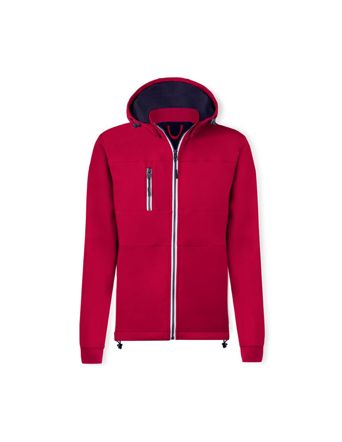 Chaqueta de resistente y transpirable material soft shell de 300g/m2. De corte moderno, con cremallera central, bolsillos laterales y práctico bolsillo en pecho con cierres de cremallera y tiradores en contraste. Cuello elevado con capucha ajustable y desmontable. Dobladillo inferior con cordón ajustable. Mangas con cómodos puños de punto en color a juego. Exterior en soft shell resistente al viento y al agua, e interior de cálido micropolar en color contraste. Disponible en tallas XS, S, M, L, XL, XXL.