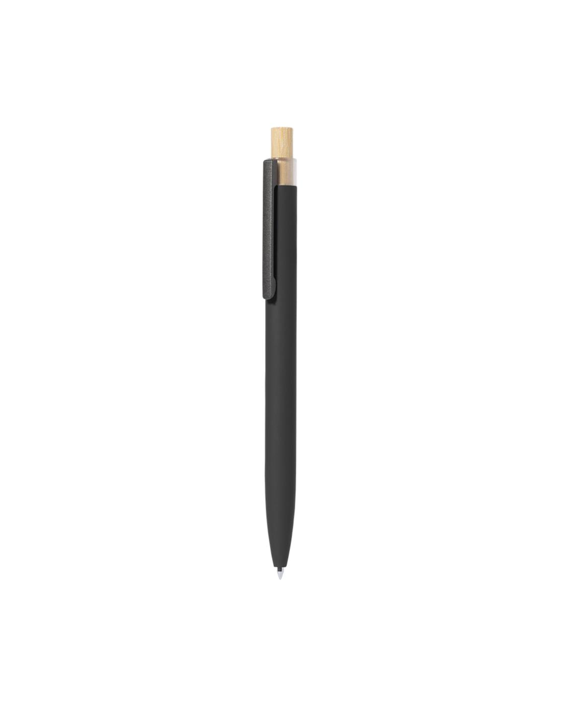 Bolígrafo de mecanismo pulsador fabricado en aluminio reciclado. Pulsador en bambú y cuerpo acabado goma, disponible en variada gama de elegantes colores. Clip metálico y distintivo aluminio reciclado en la parte superior del bolígrafo. De cartucho jumbo y en tinta azul. Presentado en bolsa individual reciclada.El aluminio reciclado es un material con posibilidades de reciclaje casi infinitas, sin perder sus propiedades originales y consumiendo menos energía en este proceso.Certificación GRS (Global Recycled Standard / Estándar de Reciclaje Global), que garantiza el origen reciclado del material usado para fabricar el producto.