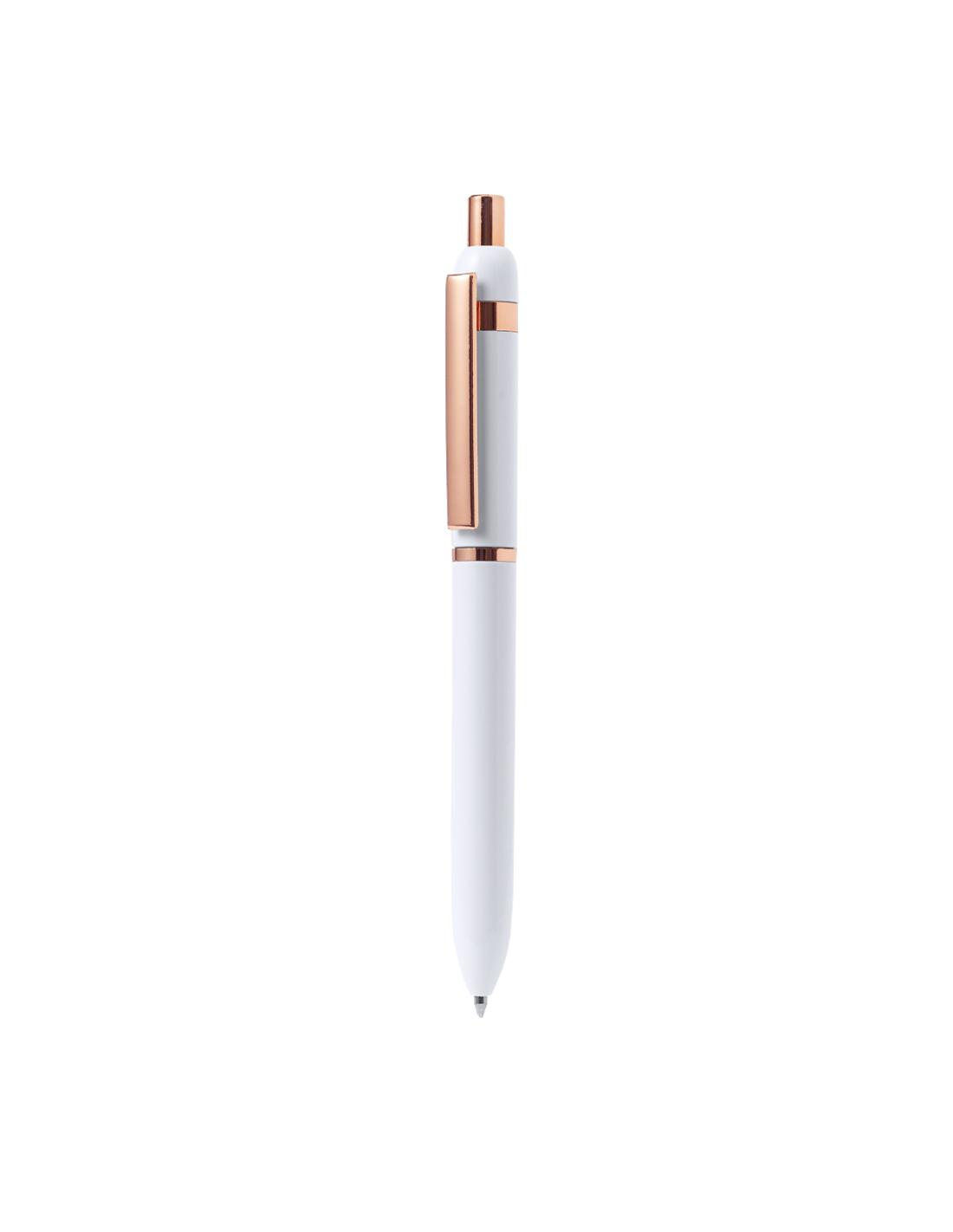 Elegante bolígrafo especialmente diseñado para el marcaje en láser con logotipo en color rosado. De mecanismo pulsador, clip metálico y accesorios en acabado cobre, con detalles plásticos en acabado rosado. Con cartucho jumbo y en tinta azul. Disponible en dos distintivos colores.Presentado en elegante caja de diseño negra.