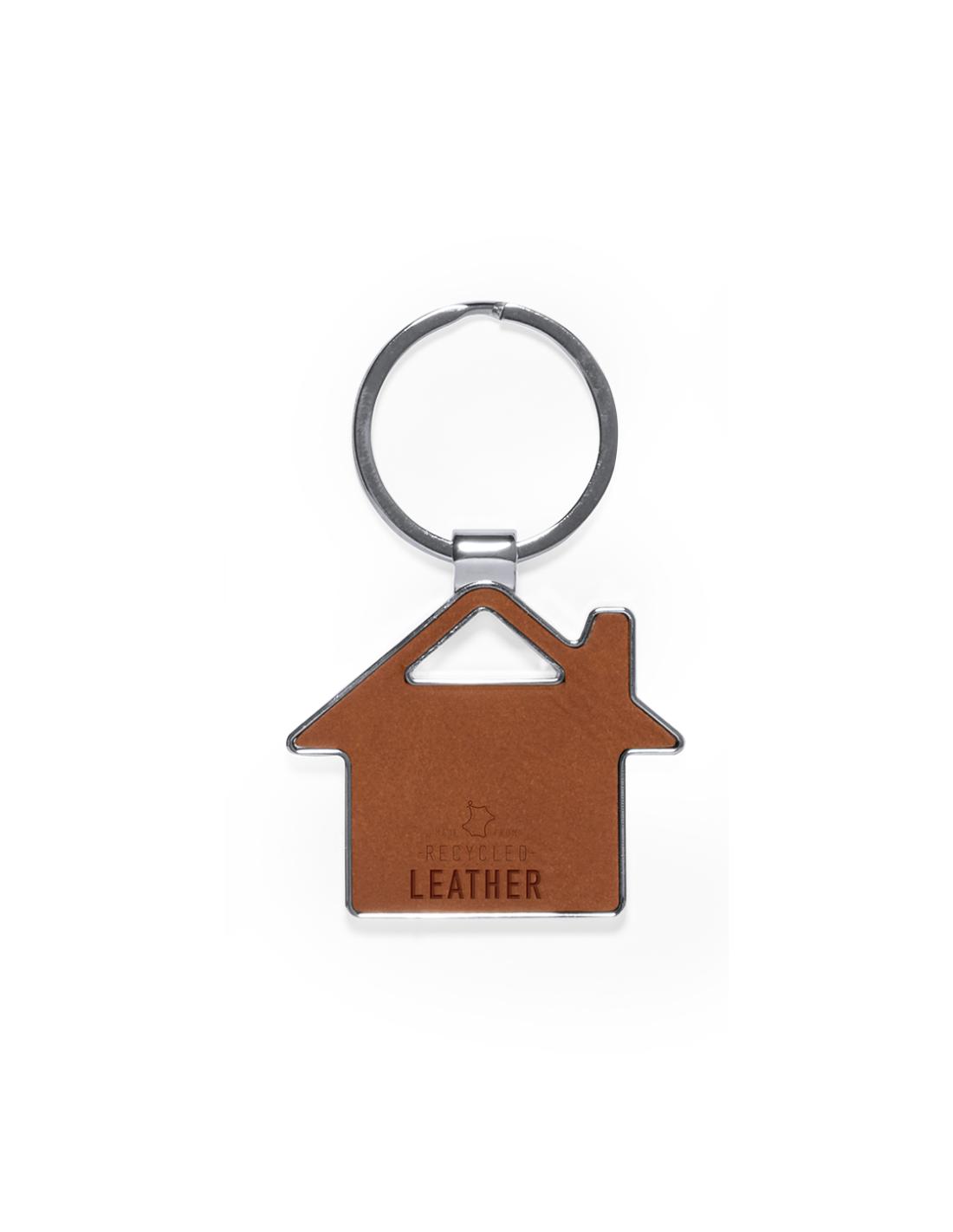 Llavero fabricado en cuero reciclado. En tono marrón, incluye distintivo cuero reciclado en una cara, con lado opuesto liso para impresión y anilla metálica cromada. Disponible en cuatro diseños:A: CasaB: CocheC: CírculoD: RectánguloPresentado en bolsa individual reciclada de cartón kraft.El cuero reciclado rescata las fibras desechadas en los procesos de fabricación del cuero, minimizando el desperdicio de material, contribuyendo a reducir el impacto ambiental y manteniendo a la vez sus propiedades originales.
