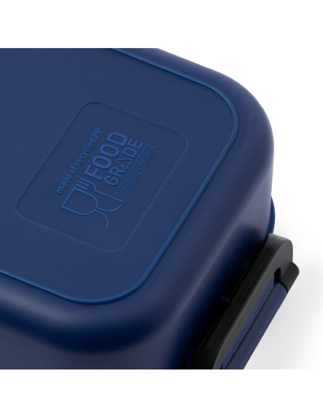 Fiambrera con exterior en acabado mate, fabricada en PP reciclado libre de BPA. De 900ml de capacidad y tapa hermética con cierres de seguridad. Dispone de Certificación Food Grade, garantizando la seguridad cuando los alimentos entran en contacto con el material usado para fabricar el producto. Disponible en variada gamas de colores. Presentada en bolsa individual reciclada.El PP reciclado es un plástico reciclado y altamente reciclable, de gran resistencia y apto para multitud de aplicaciones.