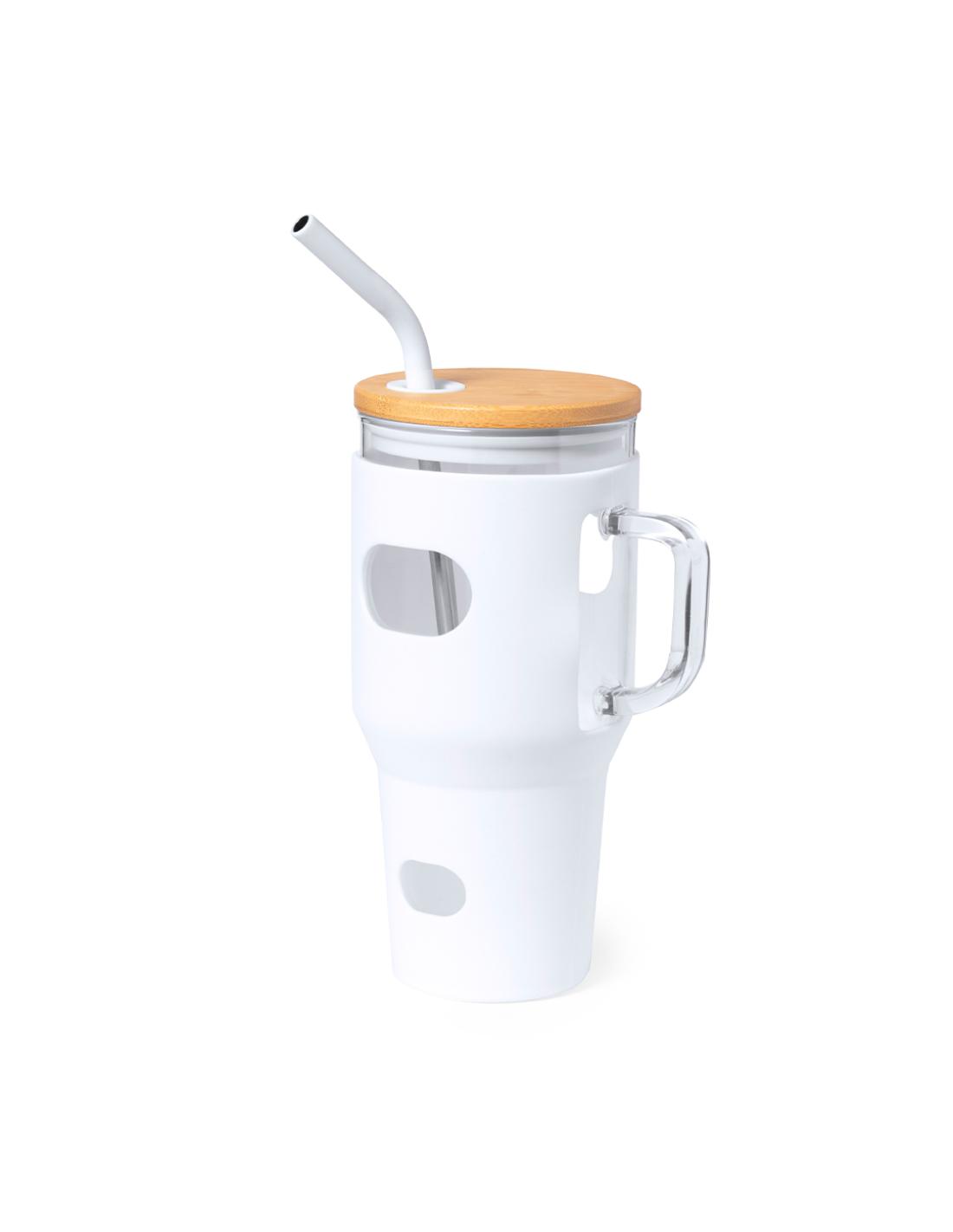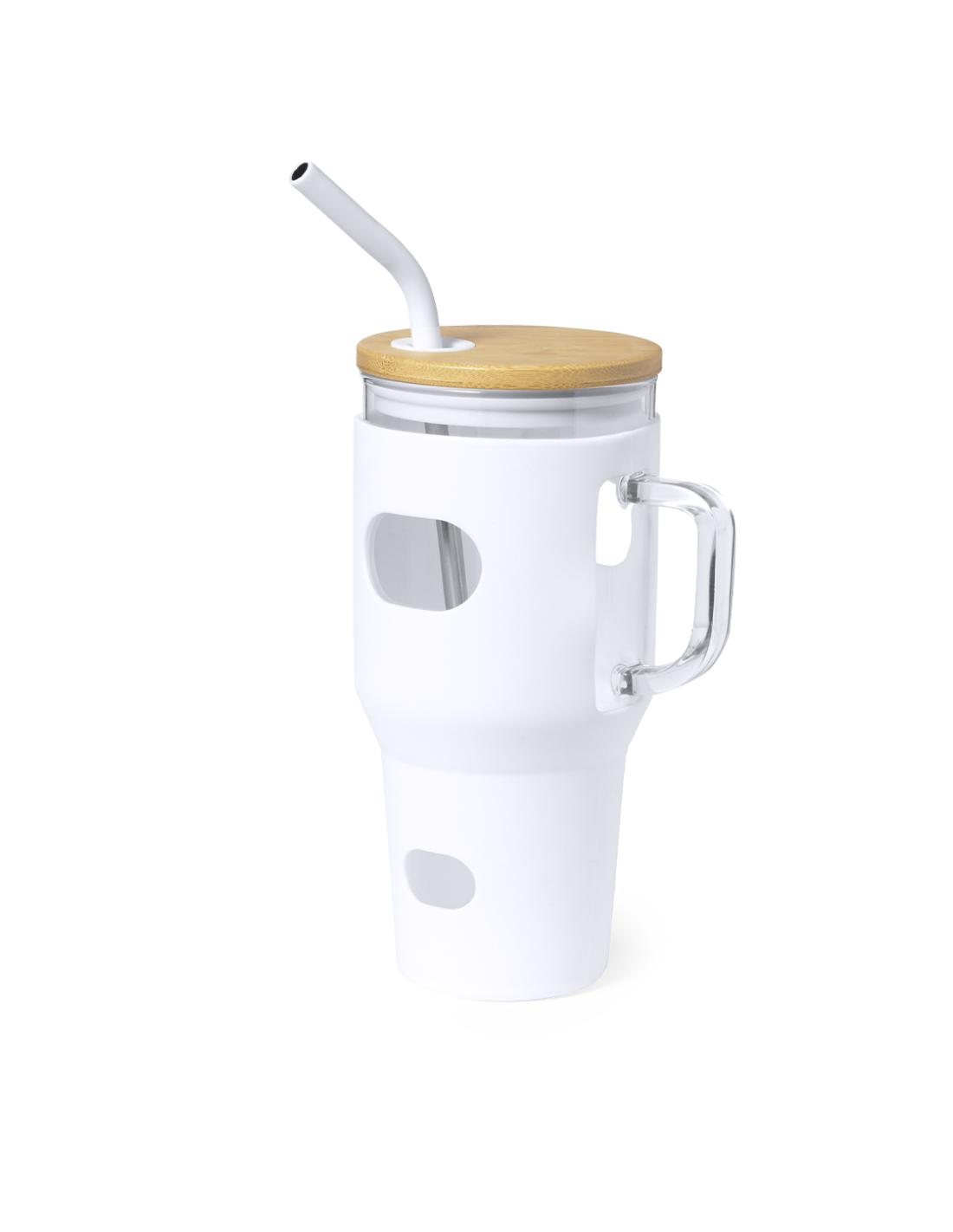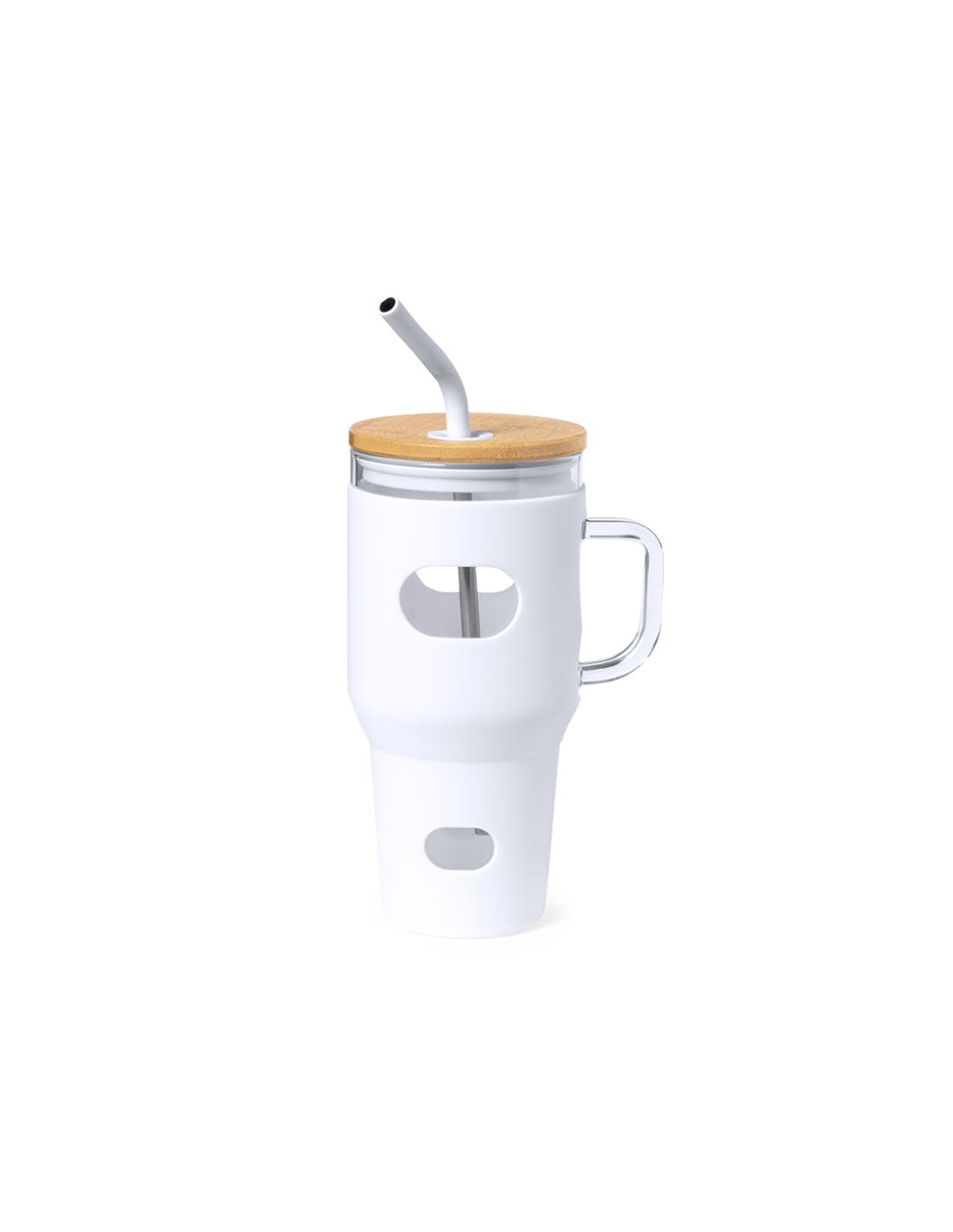 Tarro de gran capacidad (1,1 l) con cuerpo fabricado en resistente cristal, que ofrece una resistencia y durabilidad excepcionales, alargando su vida útil y pudiendo ser reutilizado infinidad de veces. Incluye asa para cómodo transporte y funda protectora en suave silicona. Tapa en bambú a presión, con orificio para pajita, y pajita reutilizable de acero inoxidable, con la punta recubierta en silicona para disfrutar de las bebidas de manera cómoda y segura.Presentado en caja individual de diseño kraft.