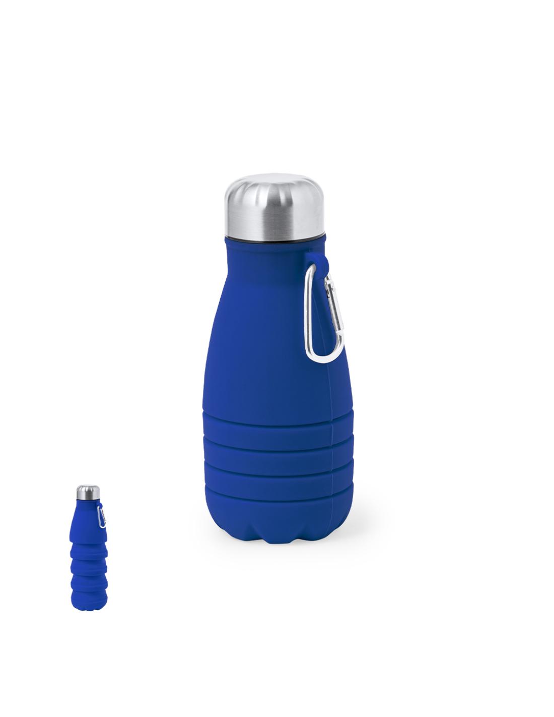 Bidón plegable de 550 ml de capacidad. Fabricado en silicona de alta calidad con tapón de acero inoxidable. Con cuerpo flexible de acabado mate, este bidón puede ser plegado para un cómodo y sencillo almacenamiento. Incluye mosquetón para fácil transporte. Libre de BPA. Es ideal para tener en tu escritorio, mesa o en cualquier superficie donde disfrutar tranquilamente de tu bebida favorita. Medidas plegado: Ø7,1 cm x 16,9 cm de alto. Medidas desplegado Ø7,1 cm hasta 24,8 cm de alto.
