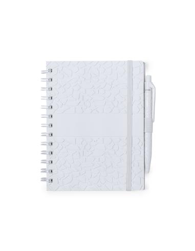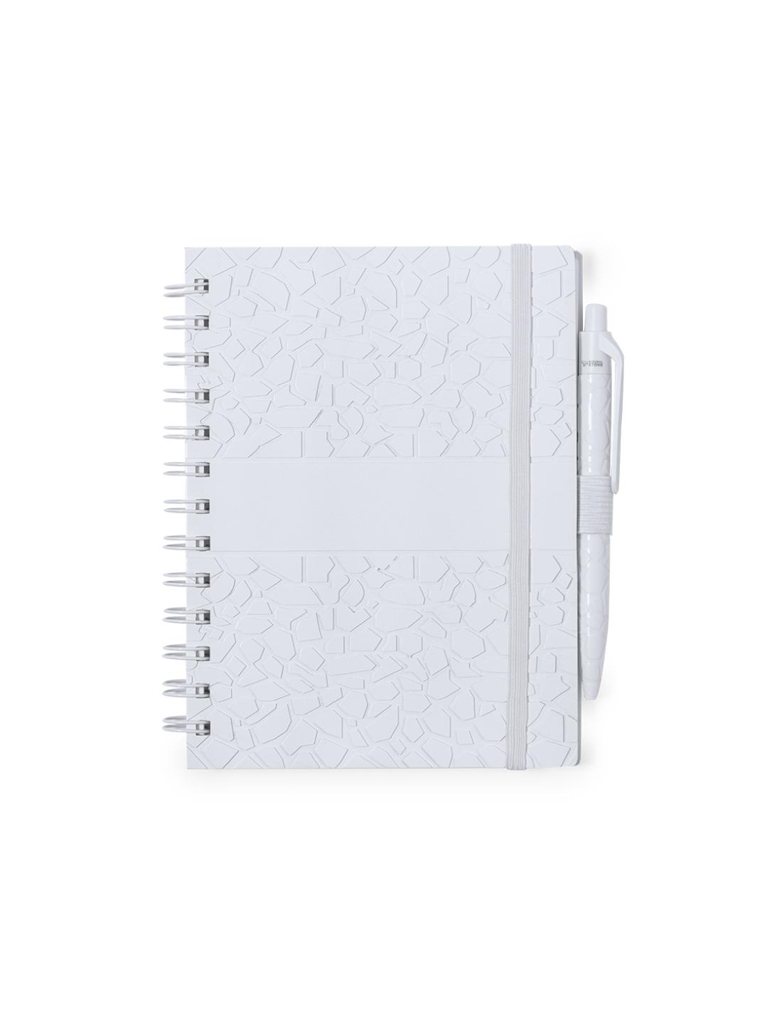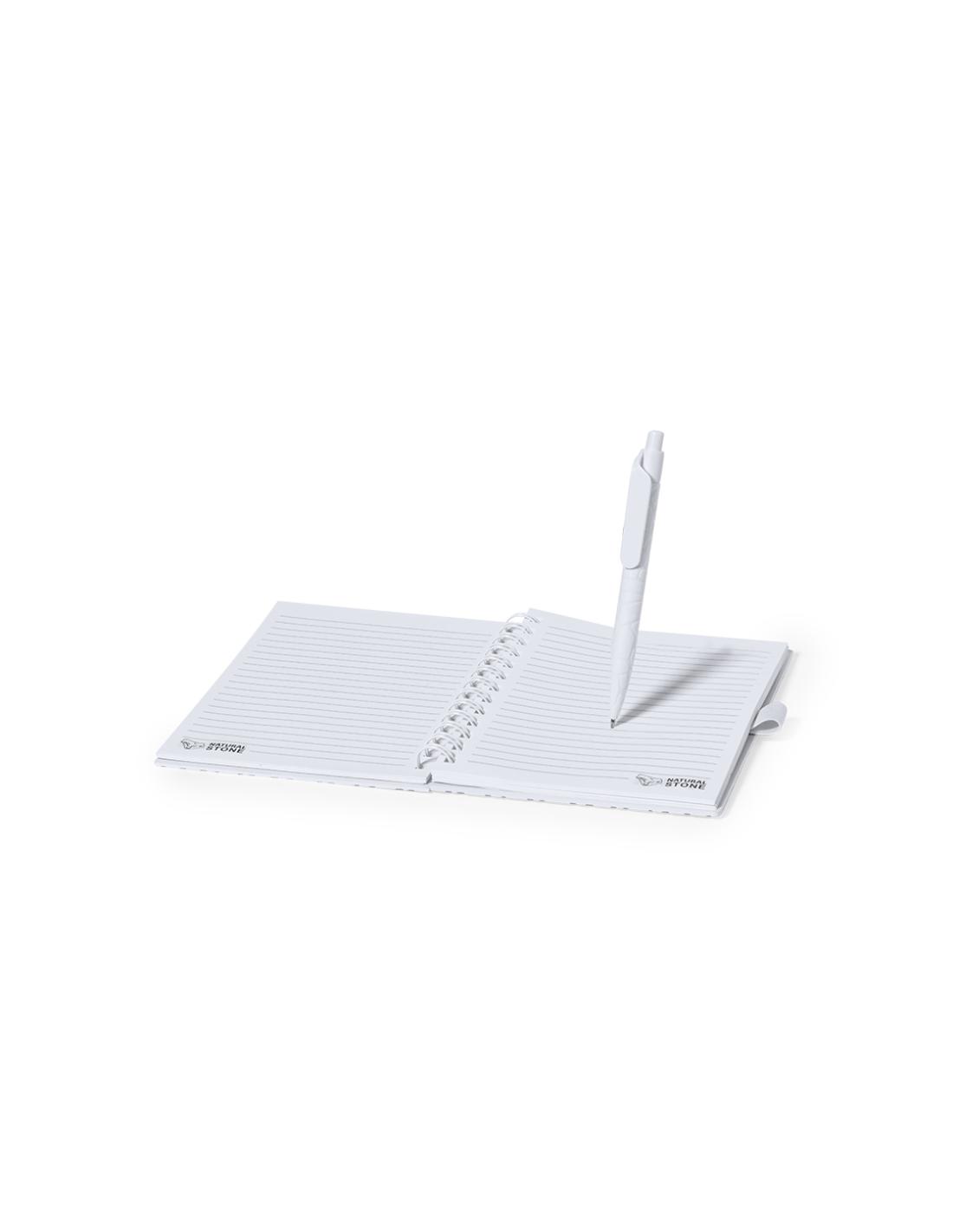 Set de libreta y bolígrafo. Contenido: Libreta de anillas con tapas rígidas fabricada a base de extractos de piedra en elegante acabado de color blanco y soporte para el bolígrafo. Portada de diseño único con relieve troquelado. De 70 hojas color blanco y disposición a una raya, con distintivo Natural Stone.Bolígrafo de línea nature y mecanismo pulsador. Cuerpo troquelado fabricado con extractos de piedra natural, ayudando a la reducción del uso de plásticos, además de proporcionar un acabado suave y resistente. En color blanco y con distintivo Natural Stone en la parte superior. De cartucho jumbo y en tinta azul.El material usado en la elaboración de la libreta es 100% reciclable y libre de cloro, con propiedades impermeables, altamente resistente y lavable, convirtiéndose así en una alternativa ecológica...