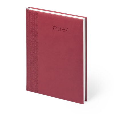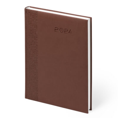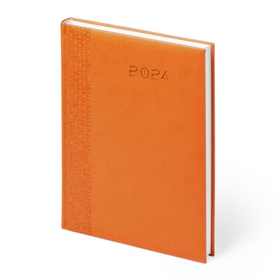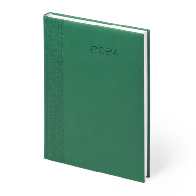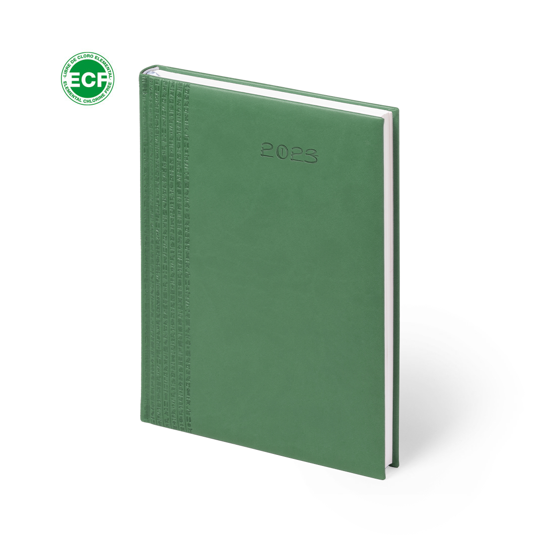 Agenda de tamaño B5 acabada en resistente y suave polipiel acolchada, con banda decorativa en el lateral. Con cubiertas rígidas, disponible en variada gama de colores.Diseño página día, con frase del día y marcapáginas de tela. En 8 idiomas: castellano, inglés, francés, italiano, portugués, gallego, euskera y catalán. Presentada en caja individual.Fabricada con papel libre de cloro elemental (ECF), que reduce de manera drástica la contaminación en el proceso de blanqueado de la pulpa del papel, consiguiendo una excelente calidad en el acabado final y, al mismo tiempo, garantizando el proceso de reciclado en múltiples ocasiones.