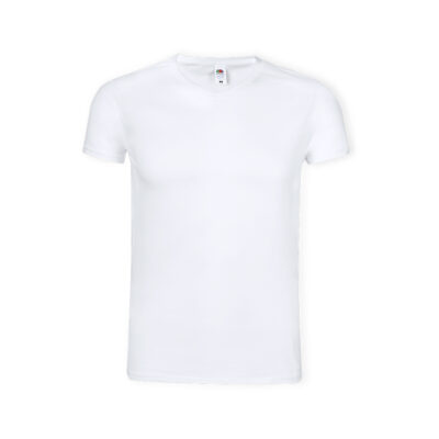 Camiseta para adulto blanca Iconic V-Neck de Fruit Of The Loom. Fabricada en material 100% algodón peinado Ring Spun de 140g/m2. De tacto suave y corte moderno, con cuello en pico estrecho de canalé 1×1 y tapeta a juego. Etiqueta fácilmente removible y disponible en tallas S, M, L, XL, XXL.