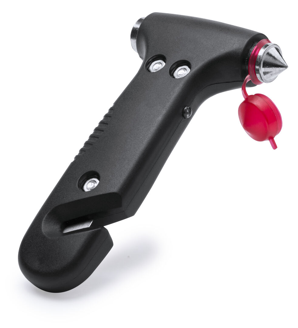 Martillo led de emergencia multifunción. Con linterna led de luz blanca, martillo rompecristales y cuchilla cortacinturones. Presentada en atractiva caja de diseño.